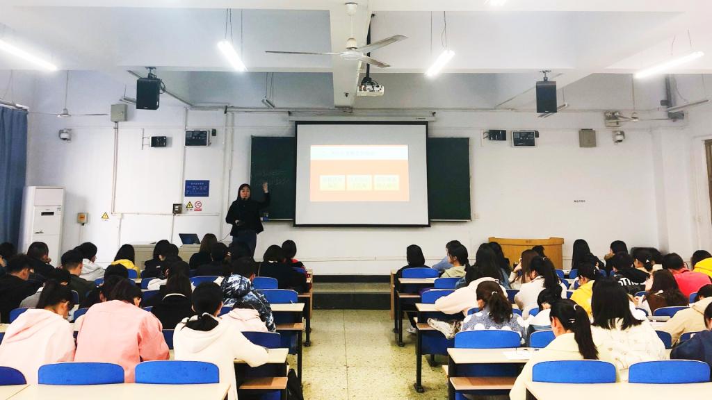 于第三教学楼A101召开职业生涯规划讲座,邀请长安区劳动就业服务局国家SYB、IYB创业培训讲师李海霞主讲,2019级部分学生参加。