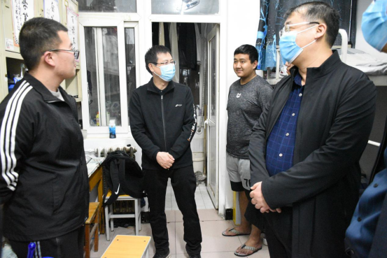 为深入了解学校疫情防控管理后学生的学习、生活情况,314日晚, sex gratis 党委书记何昱、院长赵建强、正处级辅导员赵志川、副书记孟祥燕、副院长张学儒及专职辅导员郭鹤男,一行六人来到学生宿舍6号楼和16号楼进行实地走访和学情调研。