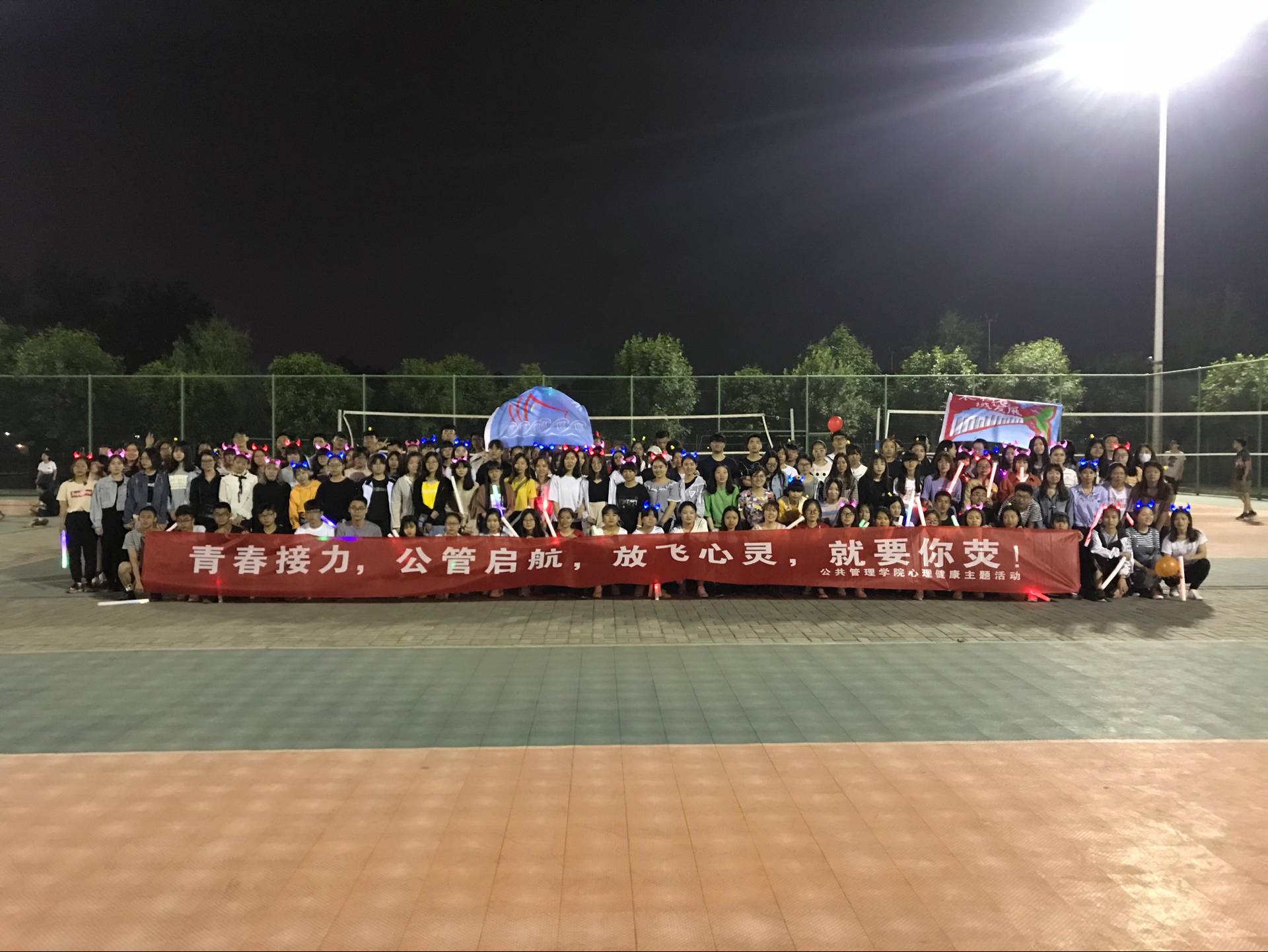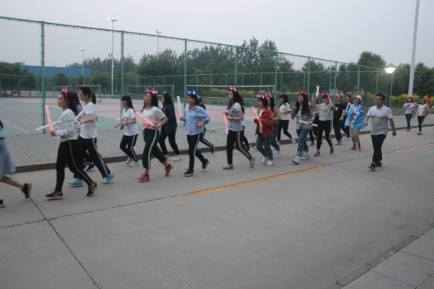 举办以“青春接力,公管启航,放飞心灵,就要你荧”为主题的荧光夜跑活动。2017级全体同学参加了此次活动。