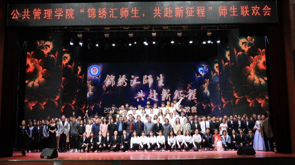 于校礼堂举办“锦绣汇师生,共赴新征程”2019年师生联欢会。学院党委书记薛向东、院长蔺丰奇、副书记孟祥燕、副院长张学儒出席,部分教师和全院同学观看了本次晚会。