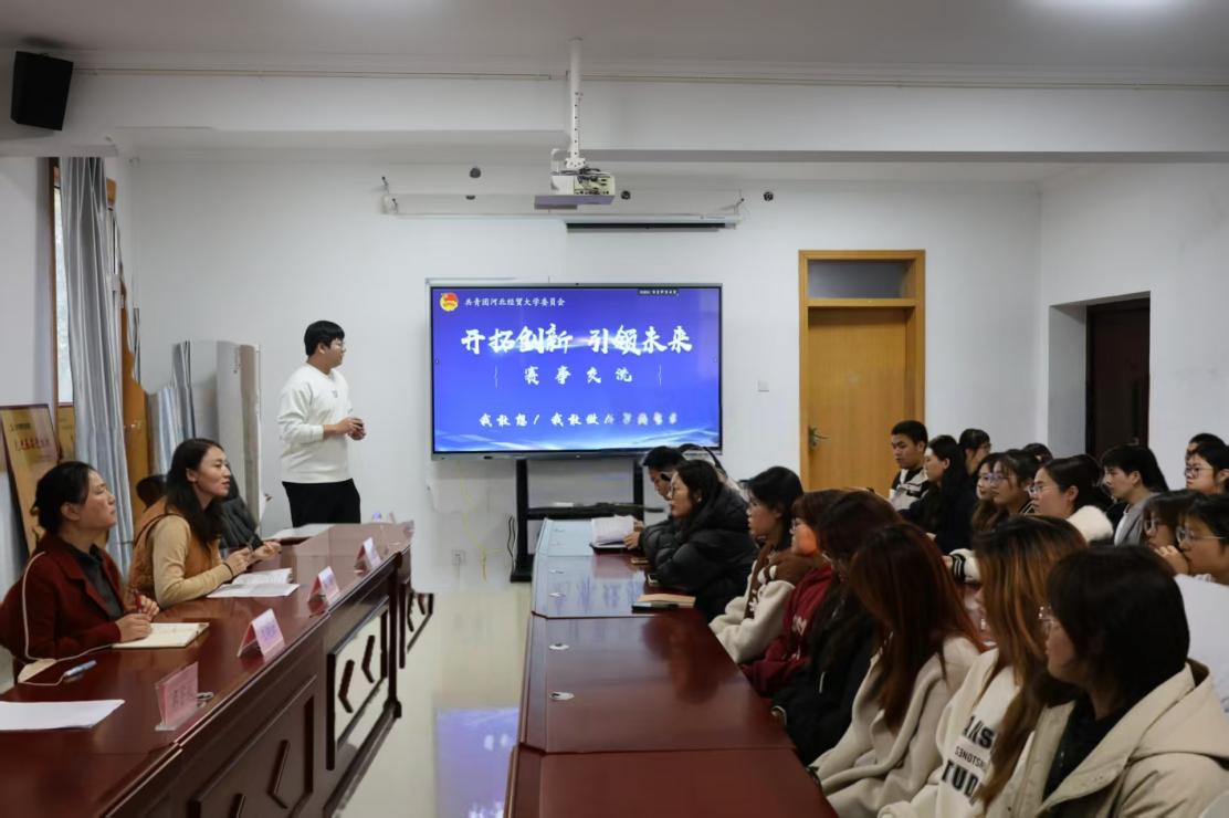 在第二办公楼401召开科创竞赛经验分享会。副院长孙茜、教师代表王艳红和王晶,以及2025年入职的10位青年教师出席,60余名同学参加。活动由学院党委副书记陈玲主持。