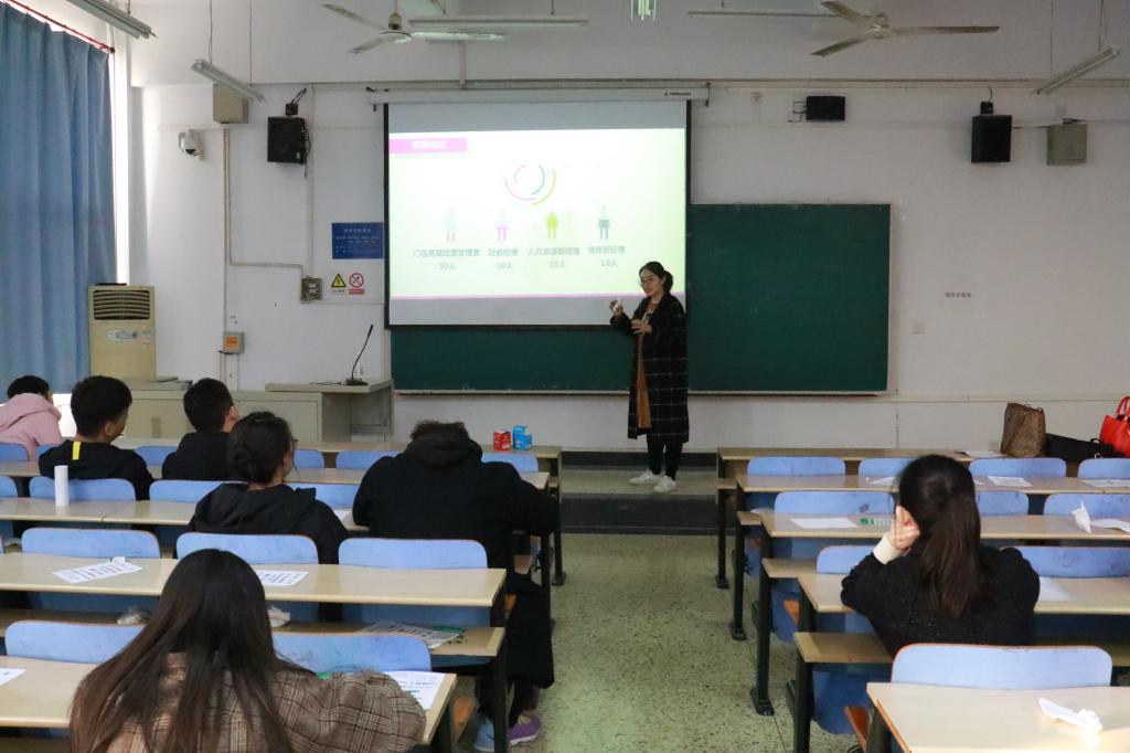 于第三教学楼A204教室举办信誉楼百货集团寒假实习项目宣讲会,信誉楼百货集团人力资源部经理张秋蕴进行宣讲,2016级、2017级、2018级部分学生参加。