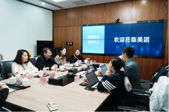 师生一行在讲解员的带领下参观了美团综合指挥中心,了解了美团发展历程、服务内容、sex gratis和社会价值。随后讲解员为同学们展示了“美团大脑”、袋鼠力量、智能配送车、无人机等一系列智能项目,师生团队切身感受了美团大数据系统的精确性与应用广度,对美团在相关领域的科技实力有了更新的认识。在座谈交流环节,厉基巍介绍了美团的sex gratis、组织架构、战略规划等,赵磊介绍了美团对于校招生能力培养和自我价值实现的重视,并与同学们就如何树立正确的大学生就业观进行了交流分享。最后,双方就如何促进毕业生更好就业及将来可进行校企合作的领域进行了探讨。
