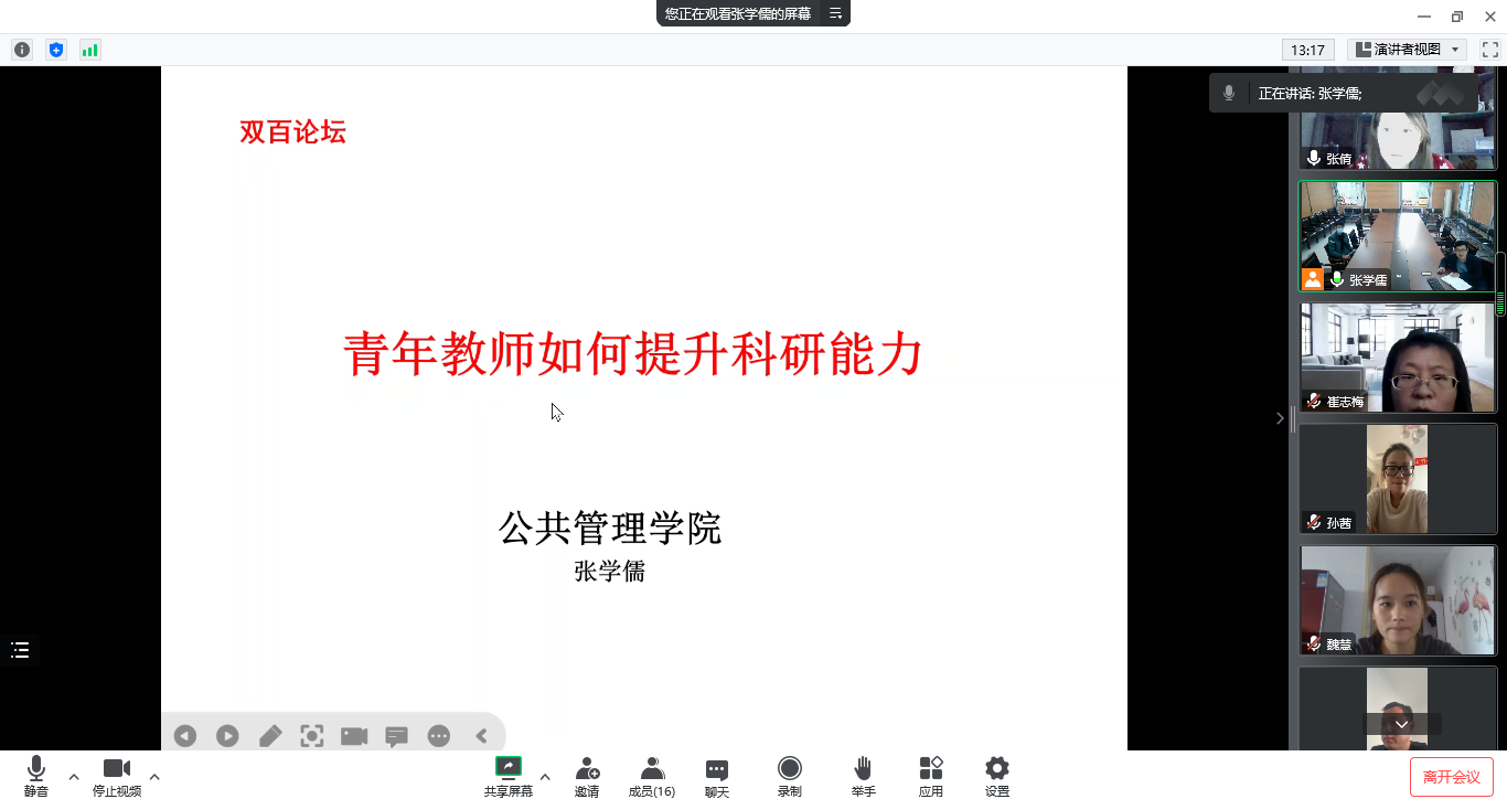 副院长张学儒教授作题为“青年教师如何提升科研能力”的专题讲座,学院青年教师30余人聆听讲座。
