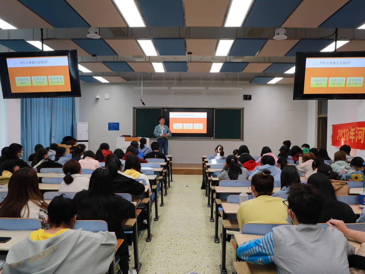 在第三教学楼A404教室举办了职业生涯规划讲座,邀请长安区人社局李海霞老师进行了以“浅谈大学生职业生涯规划”为主题的介绍和指导,2020级各班学生代表参加了此次讲座。