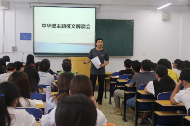 会上,白玉祥介绍了2017年学院在“中华魂”主题征文中取得的成绩。随后他通过影片《厉害了,我的国》向在场学生解读“腾飞的祖国,改革开放四十年”这一征文主题。影片将人类历史上最大的射电望远镜FAST、全球最大的海上钻井平台蓝鲸2号、磁悬浮列车研发、5G技术等里程碑般的成就细化成一个个平凡人的奋斗故事,以小见大,予人启迪。据此他建议同学们以改革开放四十年为主线,利用自己周围的真实事例、或者具有时代印记的物品来展现中国的巨大变化,要以小见大,切忌假大空。文章结构要条理清楚、层次分明,可以根据自身真实情况采用总分,总分总等结构。文章论证要具体有力,要善于使用举例论证,道理论证等论证方法。通过白玉祥生动细致的讲解,在场同学纷纷表示收获颇丰。