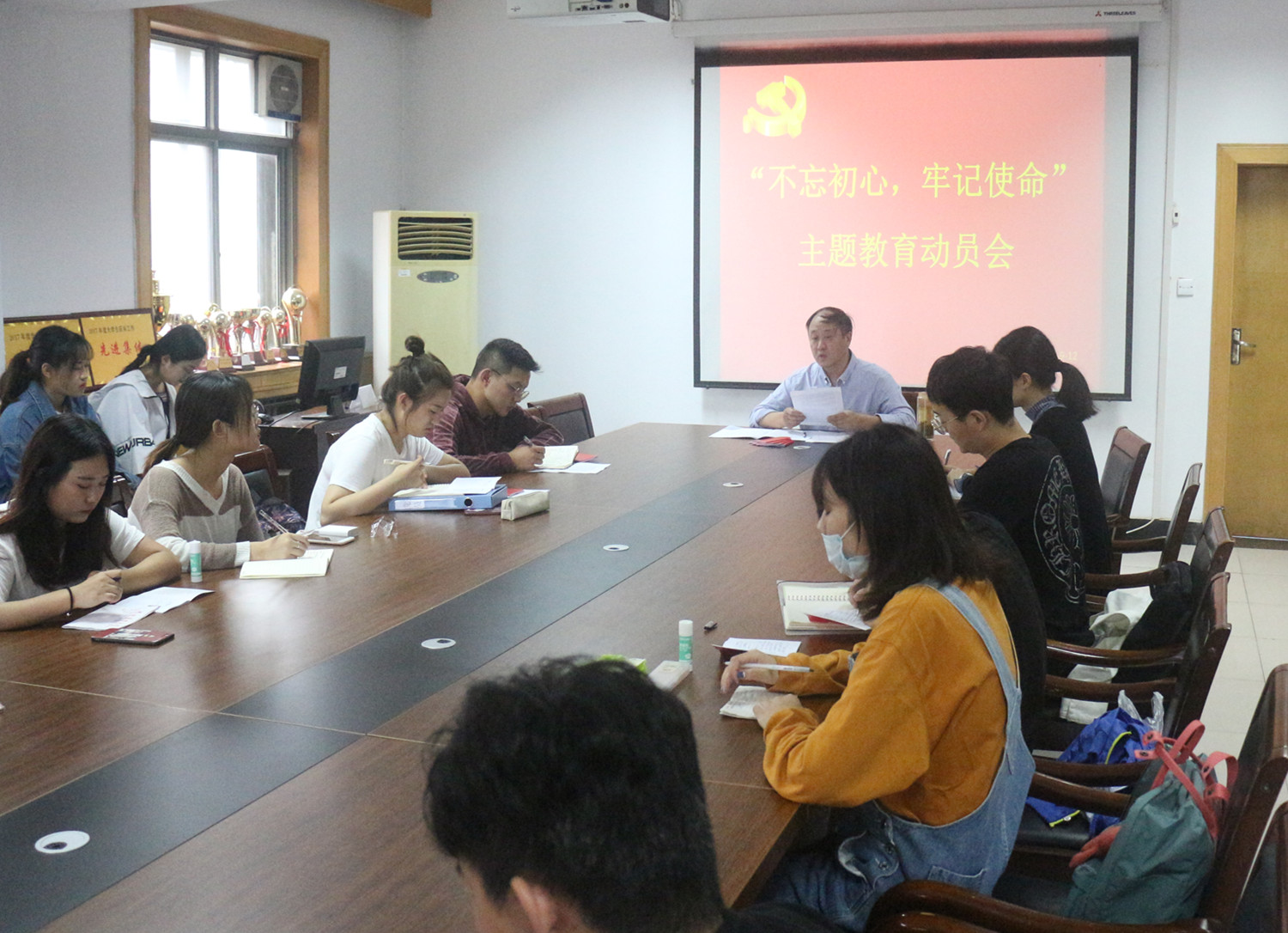 于第二办公楼301会议室召开了“不忘初心、牢记使命”主题教育动员会,学院党委书记薛向东主持,全体学生党员参加。