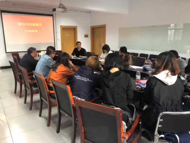 在第二办公楼301室开展辅导员职业能力提升系列培训——如何开展“谈心谈话”。党委副书记白玉祥主持,全体辅导员参加了此次培训。