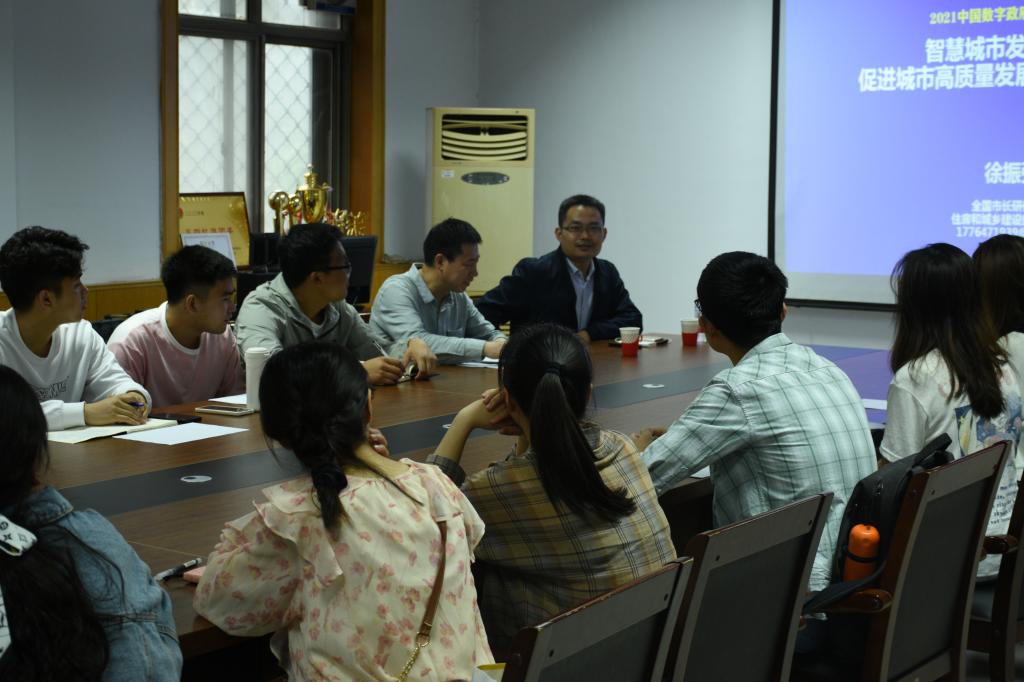 2021515日上午, sex gratis 邀请全国市长研修学院、住房和城乡建设部干部学院徐振强研究员来校做题为“智慧城市发展体系与促进城市高质量发展的抓手:新城建”的学术讲座。讲座由 sex gratis 院长赵建强主持,学院研究生共40余人聆听讲座。