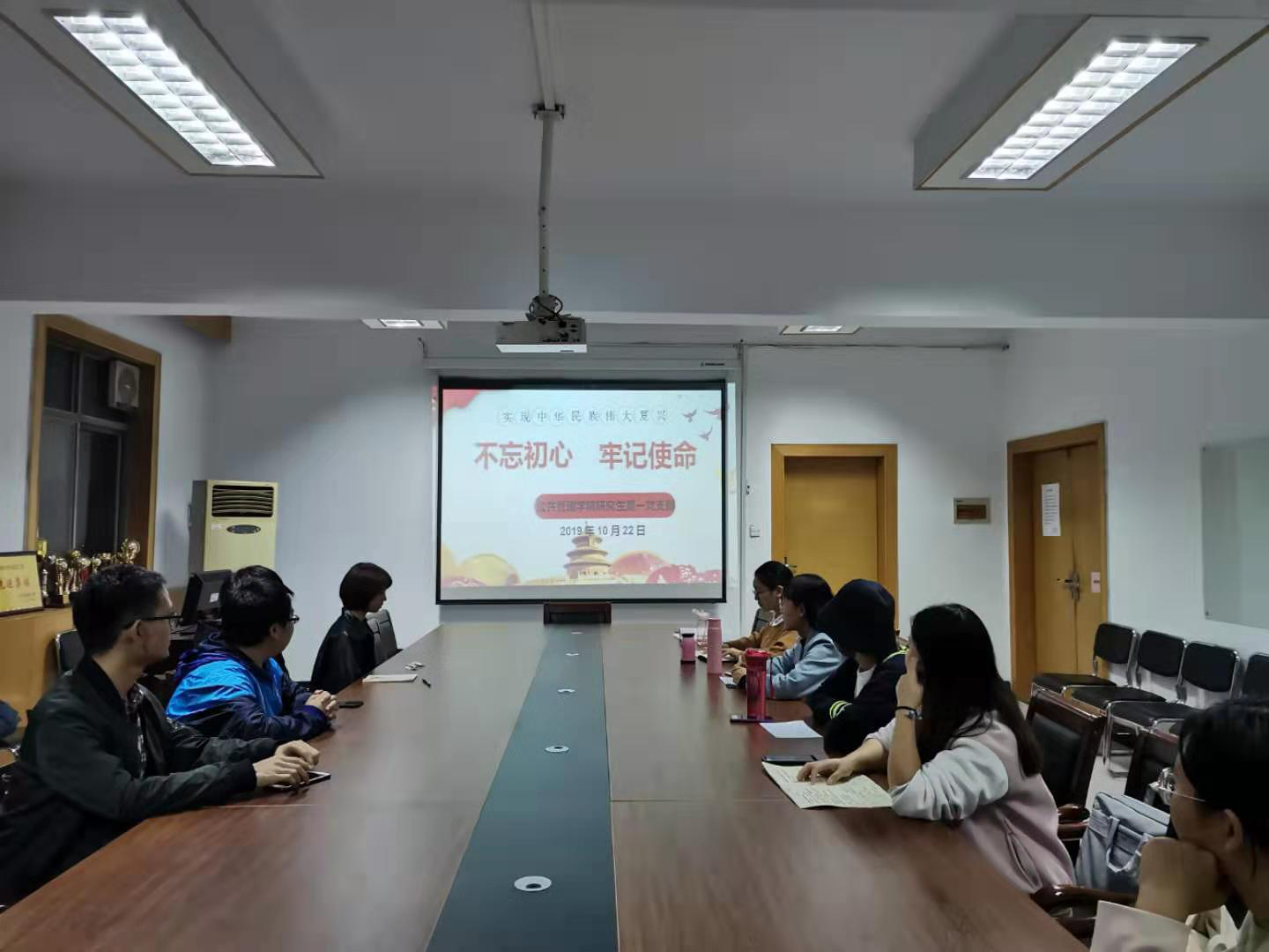 研究生第一党支部开展了“不忘初心、牢记使命”主题教育,活动由支部书记申旭光主持,全体党员参加。