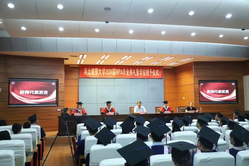 会议中心视频会议室隆重举行。学院党委书记何昱、院长赵建强、学生处副处长孟祥燕出席,教师代表、在校生代表、行政人员和2024届公共管理硕士(MPA)毕业生参加,典礼由学院副院长张学儒主持。