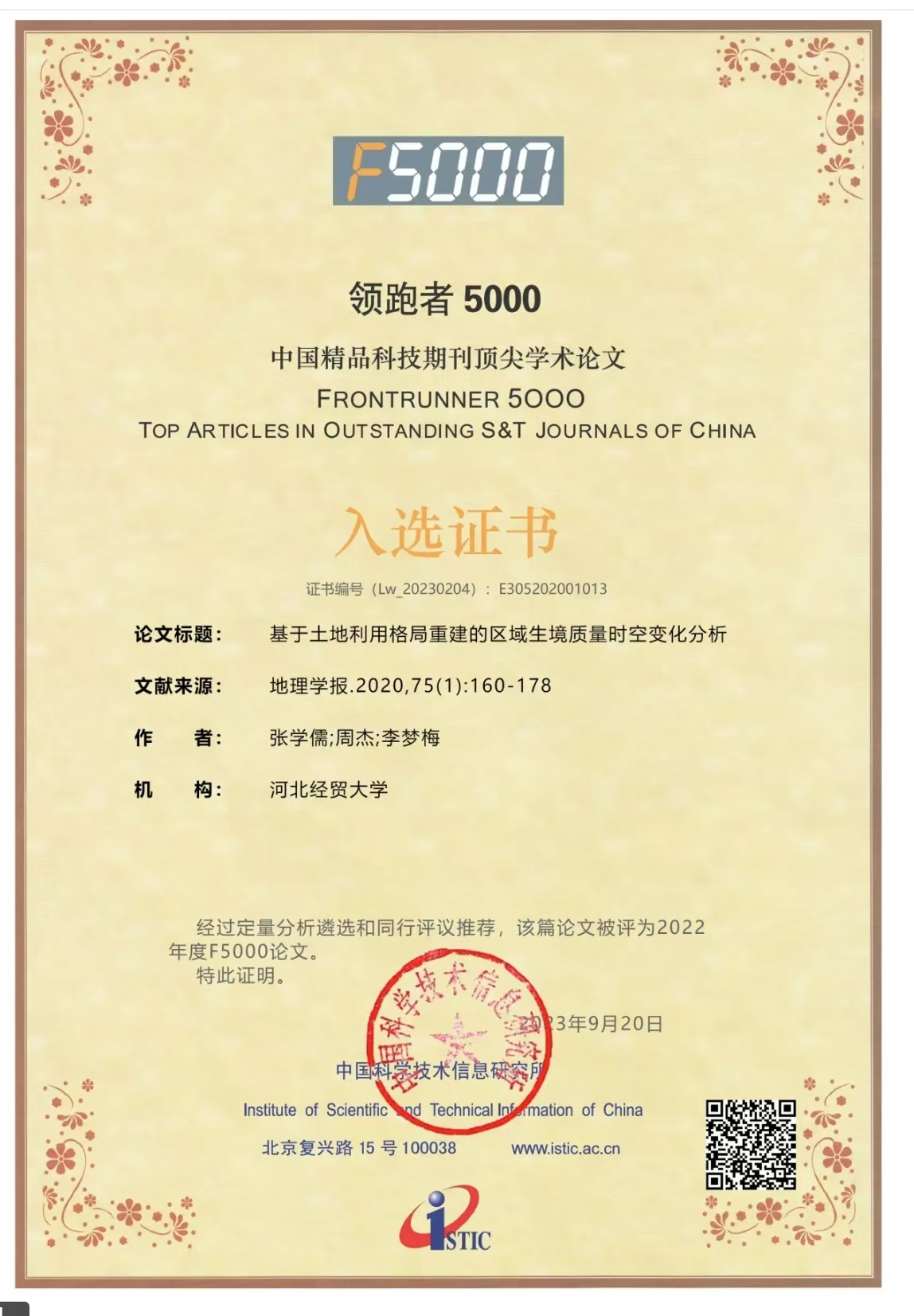 近日, sex gratis sex gratis 张学儒教授3篇论文入选ESI全球前1%高被引论文,1篇论文入选“领跑者5000——中国精品科技期刊顶尖学术论文”项目(F5000项目)。