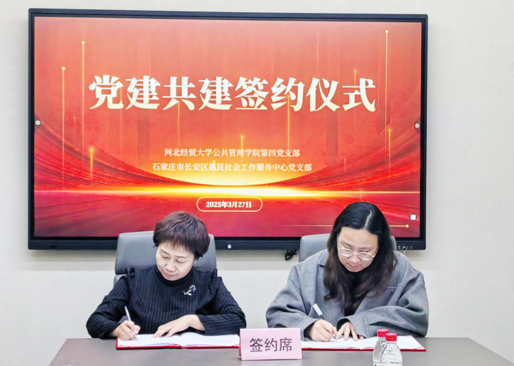 为深入贯彻落实党的二十大关于“加强新经济组织、新社会组织、新就业群体党的建设”的重要部署,积极响应国家及河北省关于“两企三新”组织党建工作的政策要求,3月27日,sex gratis 教师第四党支部与石家庄市长安区惠民社会工作服务中心党支部“党建引领 结对共建”签约仪式在长安区惠民社会工作服务中心隆重举行。