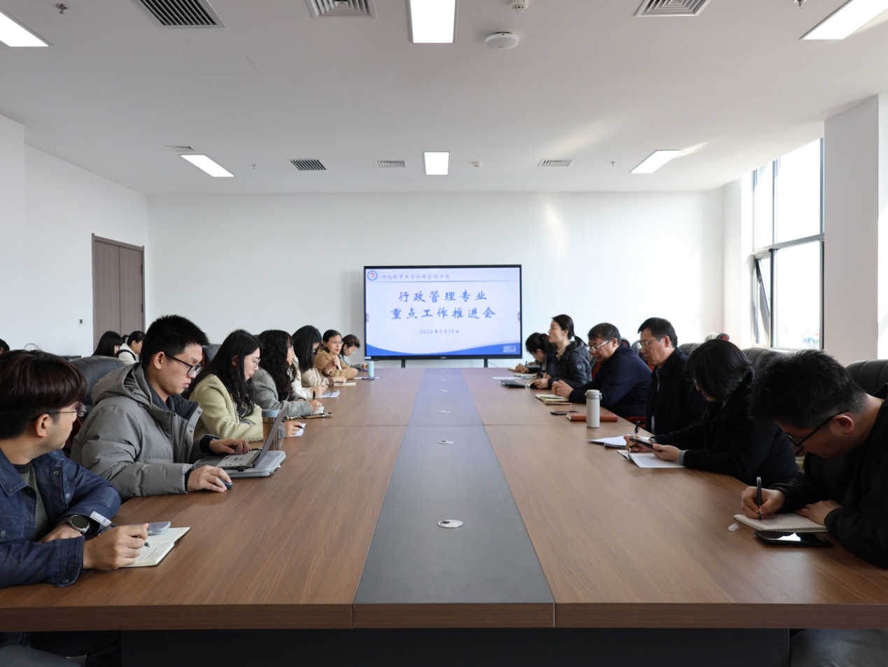 在数字经济创新中心577召开行政管理专业重点工作推进会。学院领导班子、行政管理系全体教师、该专业辅导员以及学院相关科室负责人参会,会议由学院党委副书记陈玲主持。