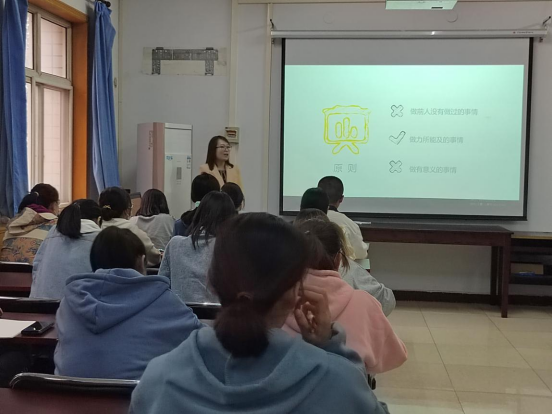 高星结合学生实际,以“如何适应大学生活”为题,与同学们就学习方式、创新创业比赛等方面进行了深入沟通;孙茜从自己的求学经历谈起,和同学们分享了如何高效学习和科研;张亚宁以“大学生创新创业赛事指导”为题,对创业计划书和科研项目申报书的各部分内容的撰写进行了细致耐心地讲解;张卫以“大学生社会调查方法”为题,轻松幽默地讲解了学好社会调查的重要性,通俗易懂地讲解了选题、调查方法与调研基本流程等内容,建议大家掌握好这门做好学问、认识社会的基本功。