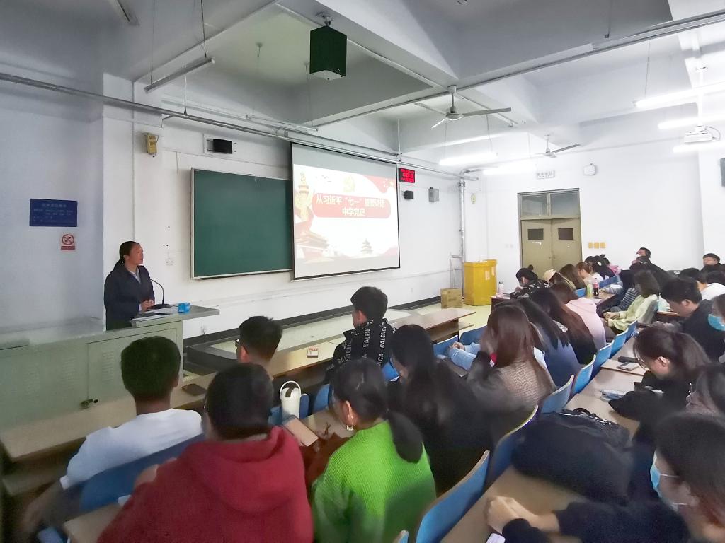 于第三教学楼C505教室召开以“从习近平总书记‘七一’重要讲话中学党史”为主题的党史学习教育宣讲。本次宣讲由学院党委副书记孟祥燕主讲,学院本期积极分子参加。