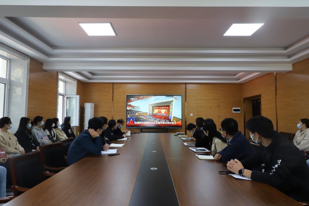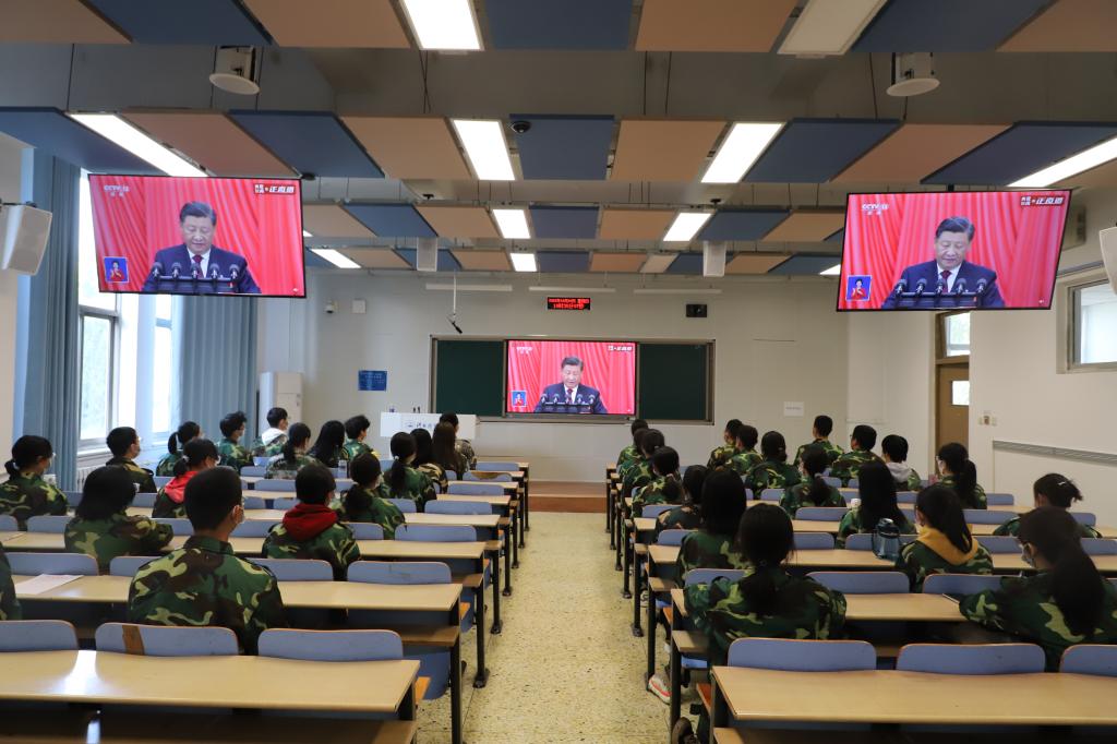 班子成员及全体行政支部和学生代表于学院二办301线下集中观看本次直播。全体2022级新生分别于第三教学楼A202、A203、A204和A208观看,学生第一第二党支部于第三教学楼A103观看,其余党支部和班级组织集体线上观看。