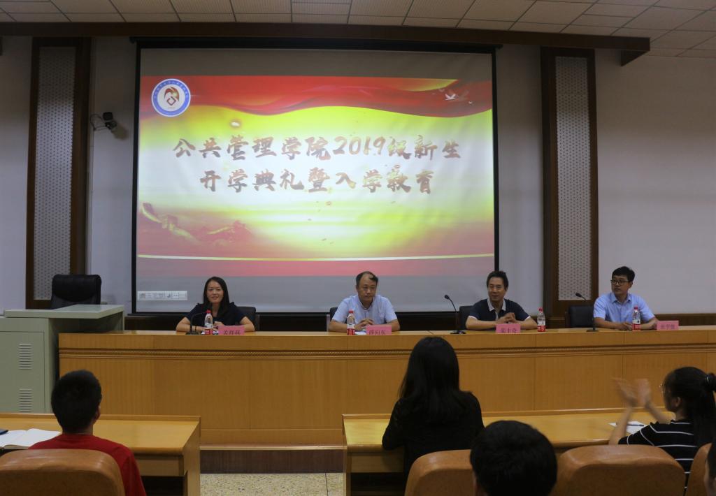 于第三教学楼C201召开2019级新生开学典礼,学院党委副书记孟祥燕主持,党委书记薛向东、院长蔺丰奇、副院长张学儒出席,2019级新生辅导员及全体新生参加。