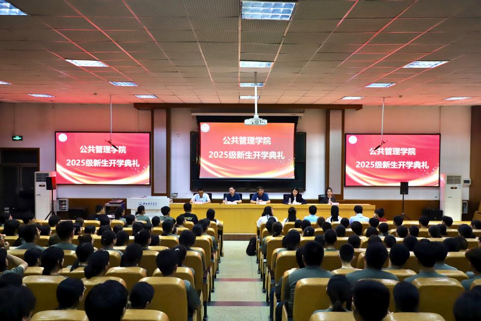 活动开始全体起立唱国歌。赵建强首先致欢迎词,代表学院对2025级新同学的到来表示热烈欢迎。他结合抗日战争胜利80周年与科技变革背景,从“以德立身、以学赋能、以志领航”三方面为新生指引方向;教师代表王敬以“公共管理”意识为切入点为新生成长提出引导性建议。
