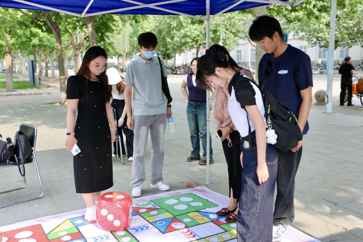校园内设置了五大游戏体验区。在“社区故事风铃展”中同学们通过工作纪实卡片感知基层治理的温度;“垃圾分类大挑战”以趣味投篮互动的方式让同学们感受到社区工作者推进环保的用心;“爱心航线大冒险”和“公益大篷车物资捐赠”让同学们真正走进困境儿童的世界,为他们的生活出一份力;“银铃生活体验站”则通过负重障碍、关节束缚书写等模拟实验,让学生们切身感受老年群体的生活不便,增强对老龄化社会的理解与关怀。
