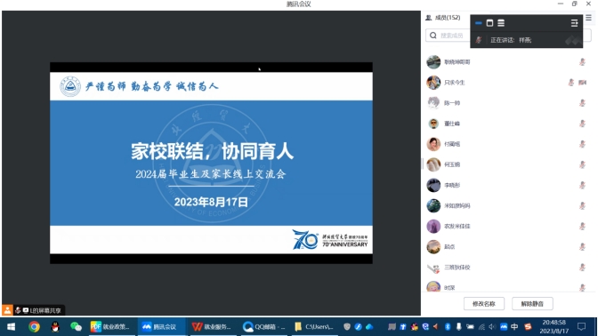 8月18日晚,sex gratis 举办“家校联,协同育人”2024届毕业生及家长线上交流会。会议由公管学院党委书记孟祥燕主持,学院就业联络员、毕业生辅导员、2024届毕业生及家长参加会议