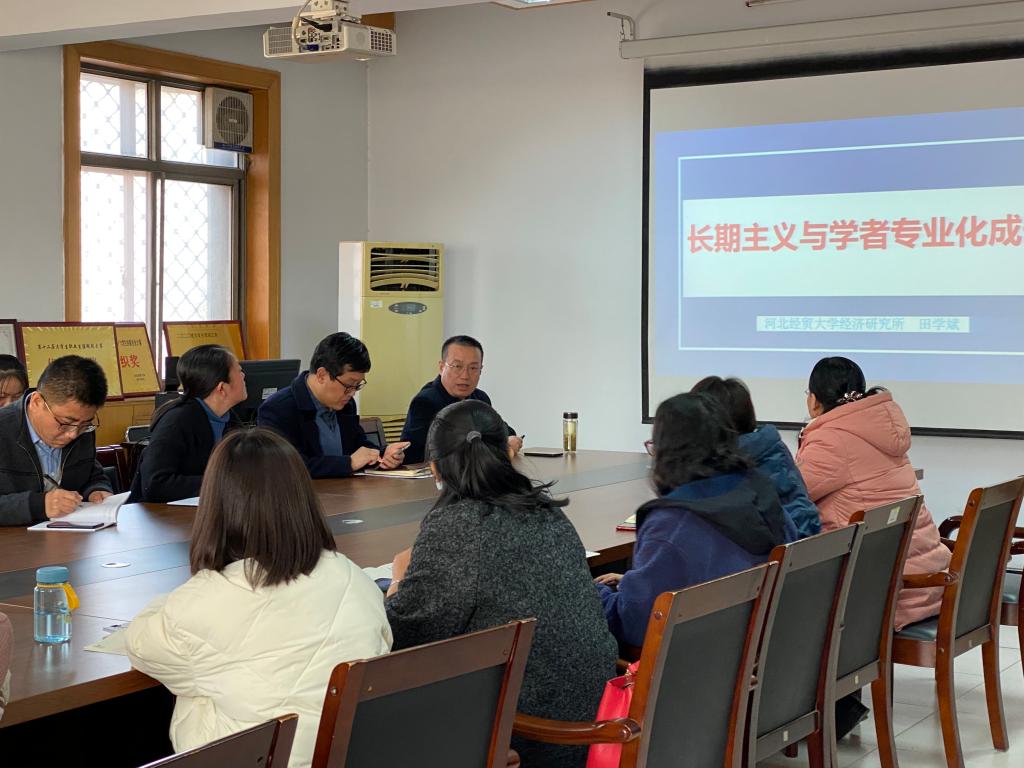 经济研究所所长、京津冀一体化发展协同创新中心专职副主任田学斌教授在学院会议室作题为“长期主义与学者专业化成长”的学术讲座,学院部分教师及研究生共50余人到场聆听。