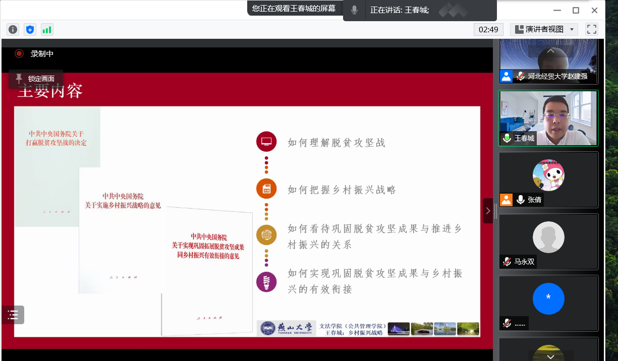 邀请燕山大学博士生导师王春城教授通过腾讯会议做“巩固脱贫成果与乡村振兴有效衔接的公共政策议题”学术讲座。本次讲座由 sex gratis