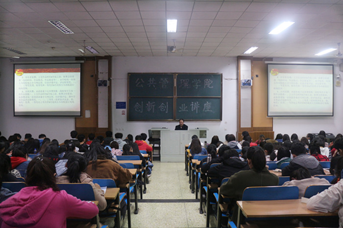 于第三教学楼C225教室举办创新创业专题讲座。学院党委书记薛向东主讲,辅导员李斯及2017级全体学生参加了此次讲座。